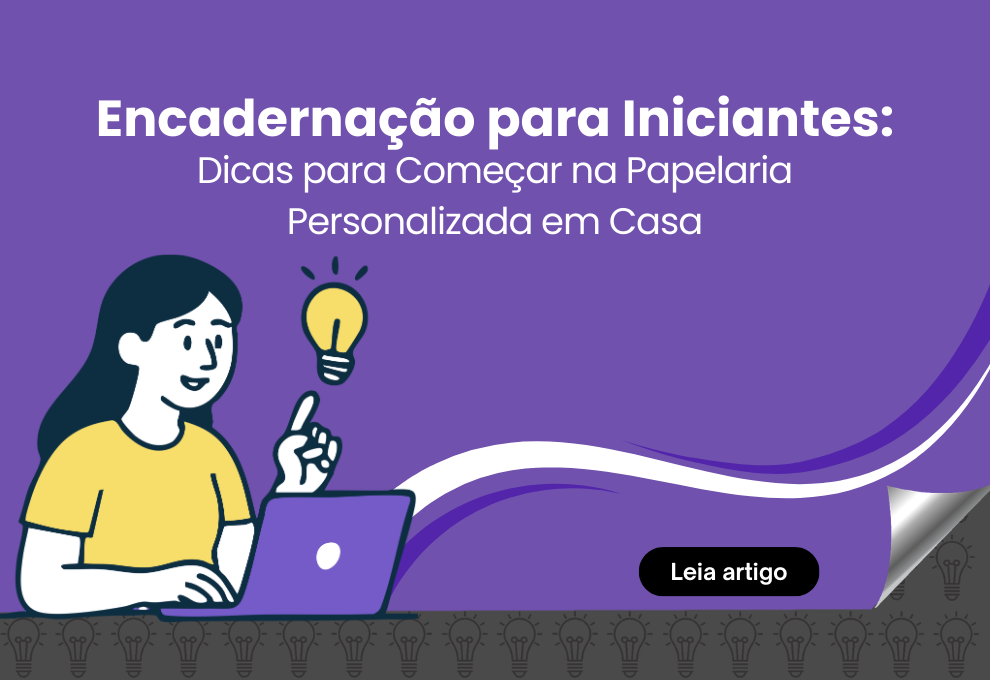 Para quem está começando na papelaria personalizada, montar uma estrutura básica de trabalho faz toda a diferença no dia a dia da produção. Ter os equipamentos e insumos certos desde o início ajuda a organizar melhor o processo e evita erros comuns de quem está dando os primeiros passos na encadernação.